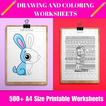 Unleash creativity and artistic skills with this 500+ Drawing and Coloring Worksheets pack! Designed for preschoolers, kindergarteners, and young learners, these fun and engaging A4-size printables are perfect for kids to explore their imagination while developing essential fine motor skills.
